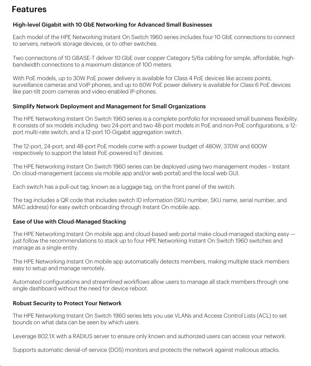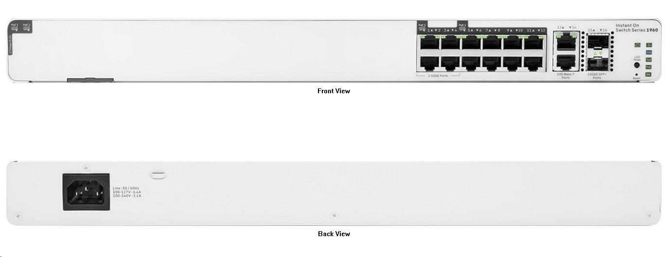 HPE Networking Instant On Switch 8p Gigabit CL4 4p SR2.5G CL6 PoE 2p 10GBT 2p SFP+ 480W 1960