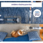 V balení najdete dlouhou a krátkou hubici, rotační kartáč, nástavec na čalounění a štěrbinovou hubici. Rotační kartáč s osvětlením je vybaven kombinací gumových a textilních lamel, takže si hravě poradí jak s koberci, tak s tvrdými povrchy. Pro zaparkování vysavače slouží držák na zeď, ideální řešení pro jednoduché nabíjení.