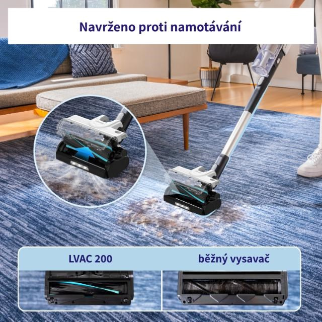 Rotační kartáč byl navržen abyste nemuseli neustále odmotávat vlasy a chlupy. Zároveň ale jeho textilní a gumové lamely fungují perfektně pro jejich odstranění. Vestavěný hřeben vlasy i srst od kartáče separuje do odpadní nádoby a udržuje ho tak čistý. LVAC 200 je ideálním nástrojem do domácnosti se zvířaty.