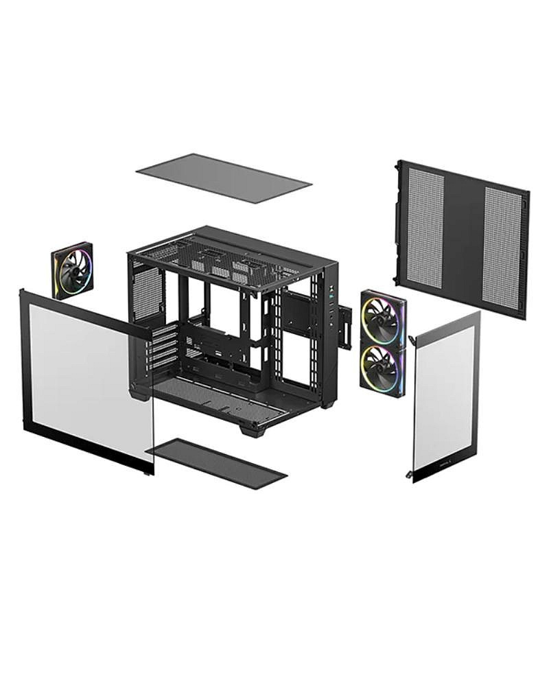 CG330 3F je panoramatická počítačová skříň s dvoukomorovou konstrukcí pro lepší proudění vzduchu a uspořádání komponent. Je předinstalovaná třemi ARGB ventilátory a vytváří působivou vizuální prezentaci vašeho hardwaru.