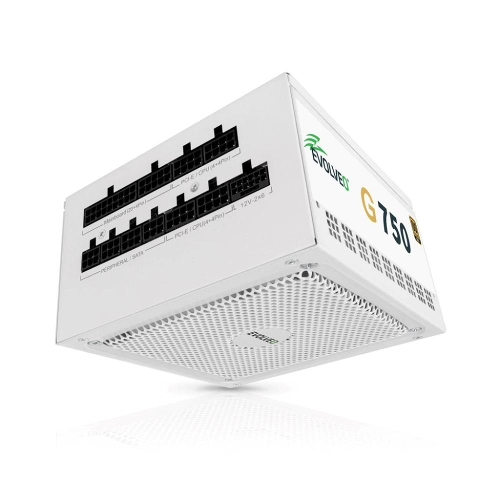 EVOLVEO G750 zdroj 750W, 80+ GOLD, ATX 3.1, aPFC, 140 mm ventilátor, záruka 3 roky, bílý