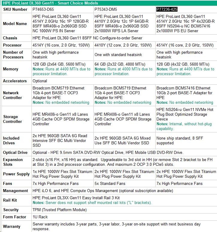 HPE PL DL360g11 4514Y (2.0G/16C) 4x32G (p64706) NS204i-u 2x1000W 8SFF 2x10G-T Smart Choice.