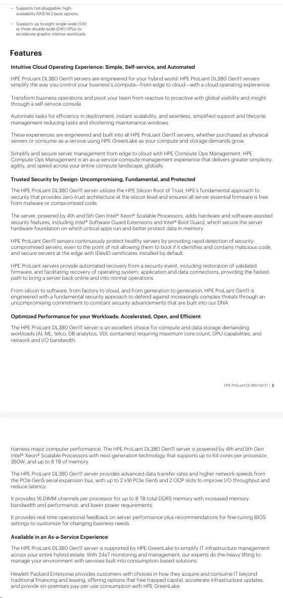 | Expansion Slots | Up to 8 PCIe Gen5, and 2 OCP 3.0 Refer to QuickSpecs for detailed descriptions |