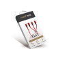 Kabel podporuje přenosovou rychlost až 480Mbps a disponuje výstupním proudem 3A. Délka kabelu 1.2m je dostatečná pro pohodlné používání. Kvalitní nylonové opletení je odolnější vůči ohybům a dalšímu poškození oproti klasickým silikonovým kabelům a tím zaručí dlouhou životnost. Kabel lze sepnout poutkem na suchý zip do skladnější podoby na cesty. Díky své univerzalitě je možné najednou propojit širokou škálu mobilních zařízení při nabíjení pouze z jednoho adaptéru.