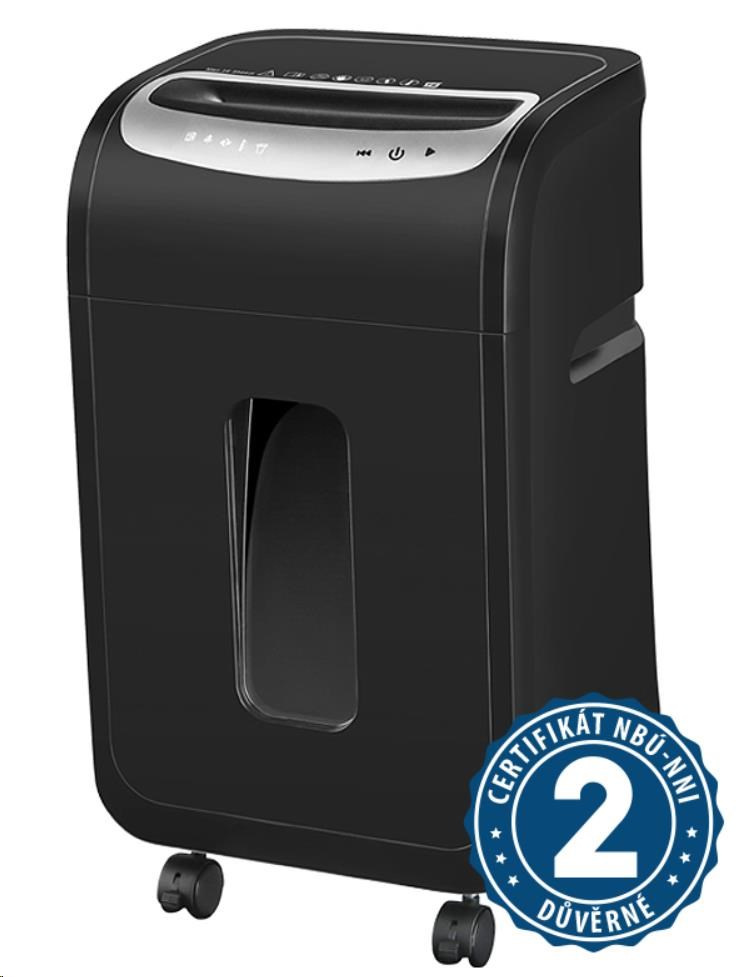 Skartovaný materiál:Papír, Kreditní karty, Sponky, CD a DVD média; Způsob řezu:Podélný; Stupeň utajení:5; Certifikováno NBÚ; Typ certifikace NBÚ:NNI 2.