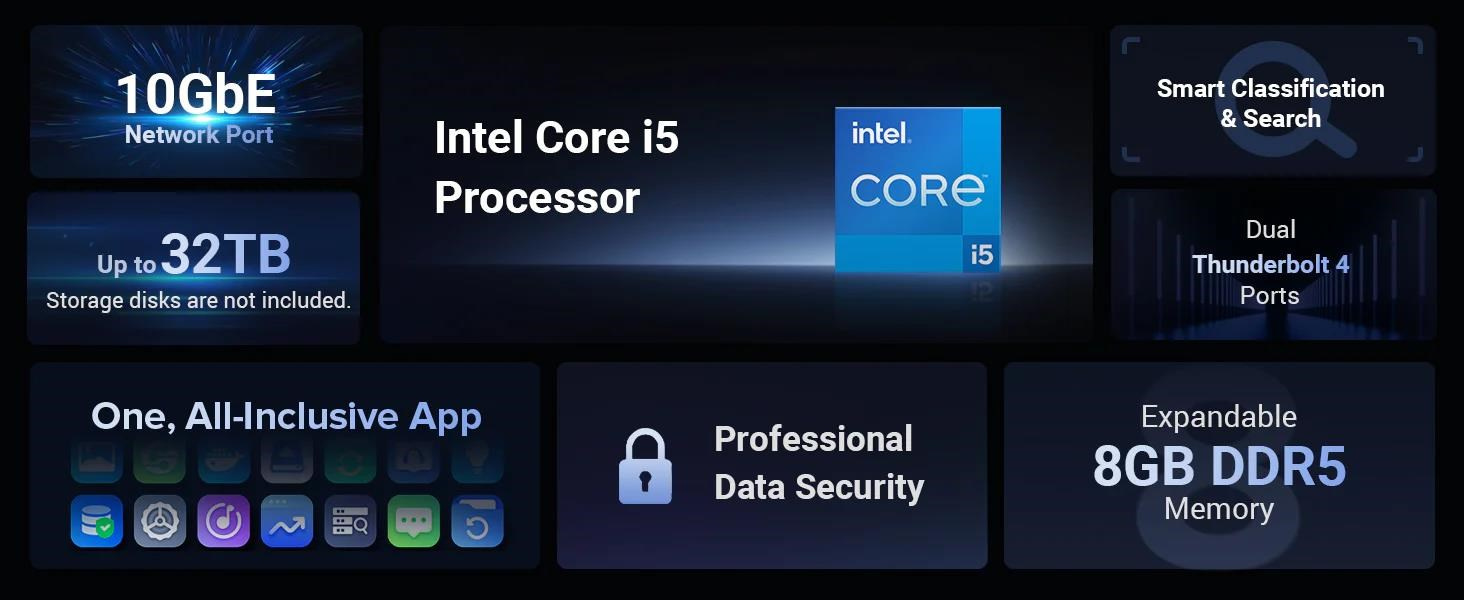 UGREEN NASync DXP480T Plus (10C/i5-1235U/4,4GHz/8GBRAM/4xM.2/1x10GbE/2xTB/1xUSB3.2/WiFi)