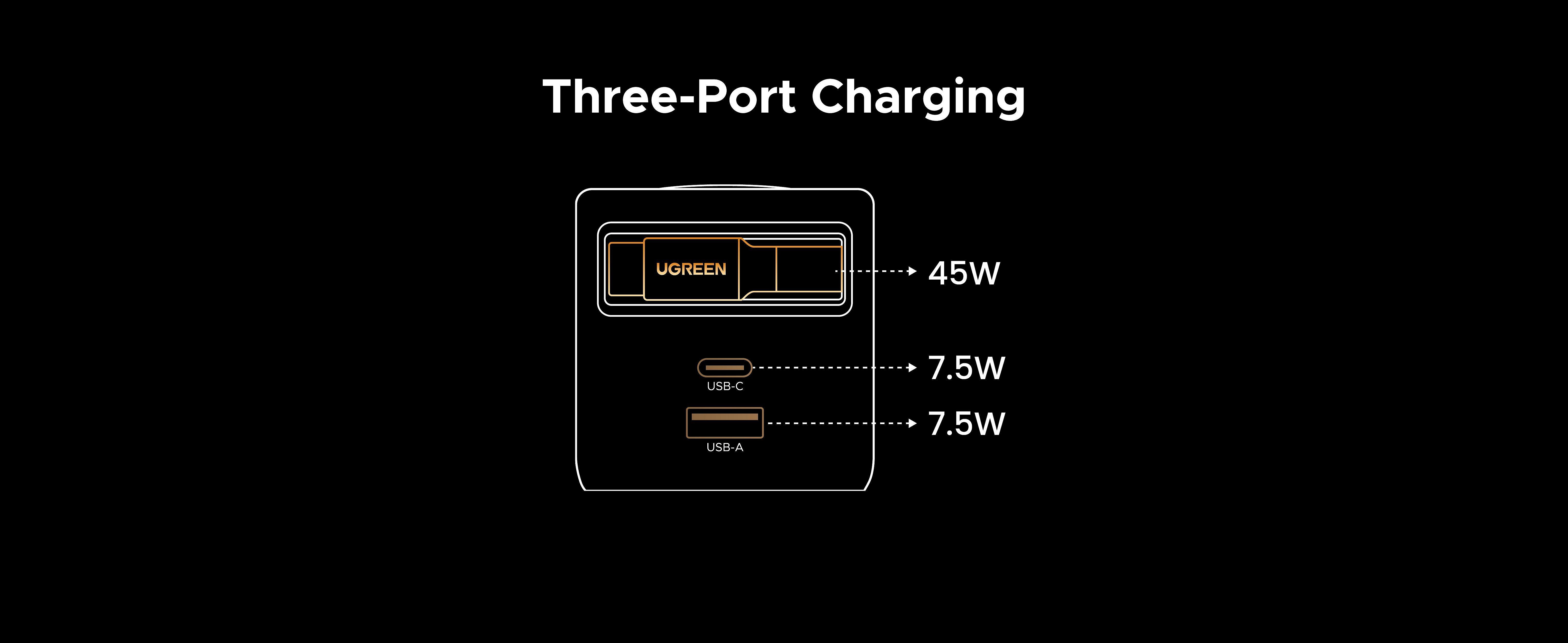 - Nabíjejte až 3 zařízení současně