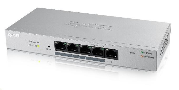 Zyxel GS1200-5HPv2 5-port Desktop Gigabit Web Smart PoE switch, 4x PoE+ GbE, PoE 60W, fanless